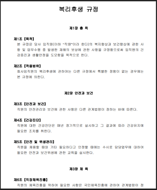 복리후생 규정은 근로자에게 제공되는 복지 제도, 혜택, 지원 기준과 절차를 상세히 정리한 문서로, 기업의 복지 철학을 대내외에 나타내는 중요한 기준입니다.